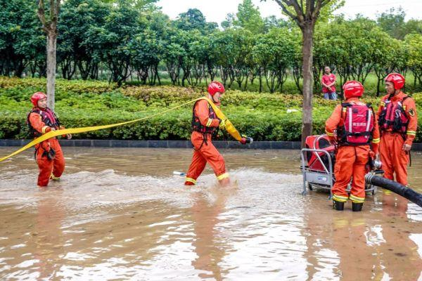 南通支隊攜1套遠程供水泵組在西王府西門(mén)地庫抽水,水已漫到車(chē)庫頂,約4米多深,8萬(wàn)多方水量。另有一套遠程供水泵組在鄭密路農貿市場(chǎng)門(mén)口抽水,水深1米多。