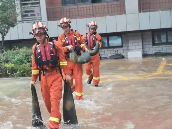 南京支隊22名指戰員于16時(shí)45分到達藥廠(chǎng)街8號鄭州高新梧桐水務(wù)有限公司門(mén)口街道,利用“龍吸水”大功率排澇車(chē)和移動(dòng)供水泵組抽水排澇,被淹路段約1000米,最深處約1米。