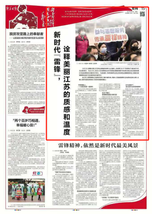 在江蘇,雷鋒精神正在新時(shí)代的土壤中被傳承、創(chuàng )新,匯聚成助推社會(huì )向善向美的力量,讓踏上現代化新征程的江蘇更有質(zhì)感更暖心。