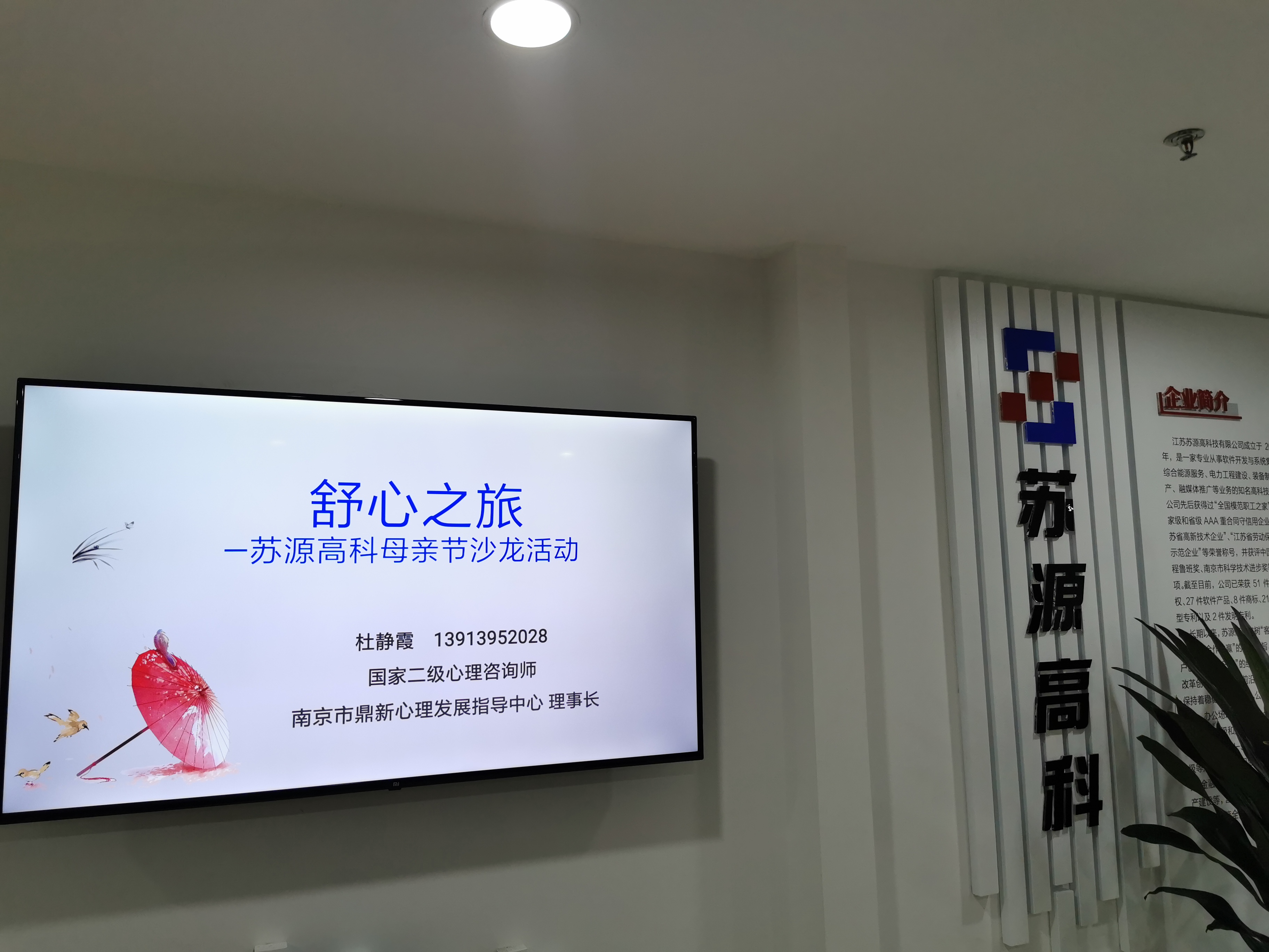 為緩減女職工心理壓力,培養女性自尊、自愛(ài)、自信、自強的精神風(fēng)貌。在“母親節”即將到來(lái)之際,公司黨支部攜手工會(huì )聯(lián)合開(kāi)展 ——“關(guān)愛(ài)母親,心理減壓”舒心之旅活動(dòng)。旨在讓女職工更好地了解自己當前的壓力指數,在專(zhuān)業(yè)老師的帶領(lǐng)下分析壓力主要來(lái)源, 了解自我減壓方法,體驗放松。塑造陽(yáng)光心態(tài),打造幸福生活,蘇源高科祝天下所有的母親,節日快樂(lè )!永遠幸福!